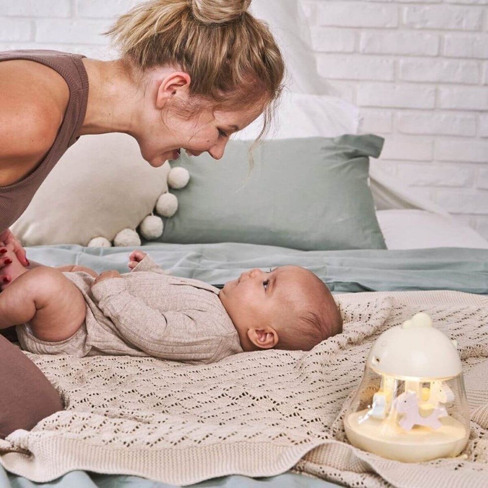 Los caballos giratorios y la suave melodía de la caja de música calmarán a tu bebé y crearán una atmósfera tranquila y dulce.